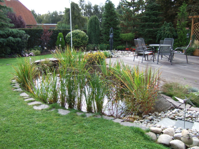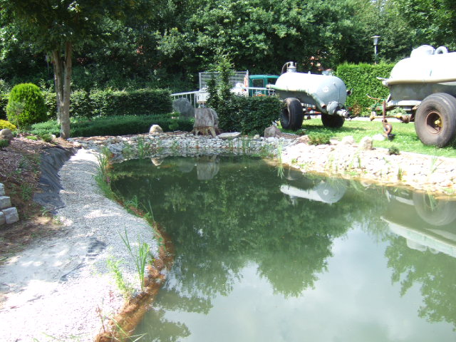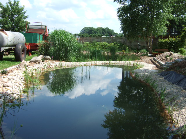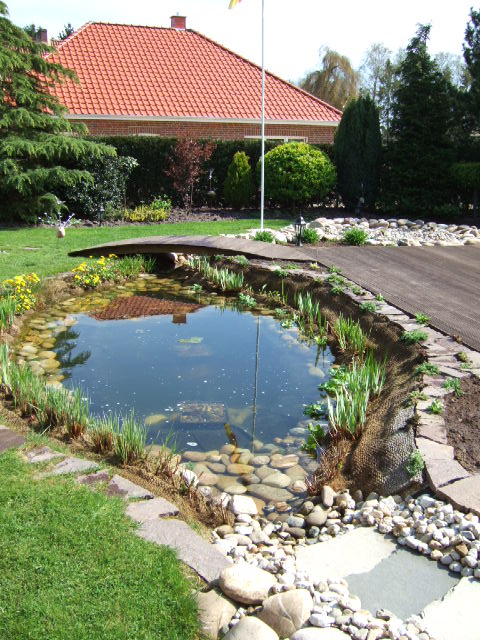 Ferner bleibt die Folie zwischen den einzelnen Pflanzkörben weitestgehend sichtbar. Für diese Teichanlagen empfehlen wir den Einsatz unserer Pflanztaschen.