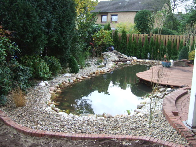 Ein absolutes Highlight ist allerdings die hiermit verbundene Alternative zur Steinfolie, etc. Nach der Bepflanzung wurden bei der folgenden Anlage Kieselsteine der Größe 8 mm bis 16 mm eingebracht. Hierdurch wurde ein optisch natürlicher Übergang geschaffen.