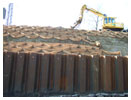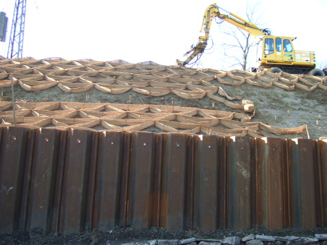 Hierzu wurde zunächst eine ca. 1 m starke Lehmschicht auf die Dammböschung aufgebracht. Um diese Erhöhung auffangen zu können, ohne die anliegenden Anwohner in Ihrer Grundstücksgröße einzuschränken, erfolgte vorab eine Spundwandrammung.
